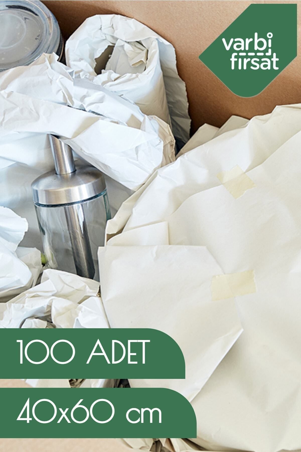 Gazete Kağıdı kalınlığında olup, naturel beyaz kağıttır Ürün hurda kağıt değildir.; Taşınma esnasında koli desteği için buruşturarak veya cam veya narin ürünlerinizi direkt sararak rahatlıkla kullanabilirsiniz.; Taşınırken tabak bardak vb eşyalarınızı çizilmeden ve kırılmadan korur.; Herhangi bir zararlı madde içermez Eşyalarınız zarar gelmeyecek şekilde paketlenir.; Ambalajlanması, stoklanması ve diğer tüm süreçleri, mutfakta ve evde kullandığınız ürünlerinizi hijyenik bir şekilde paketlemeye uygundur.; 40x60 Tabak - Bardak Sarma Taşıma Taşınma Paketleme Kağıdı 100 ADET gönderilecektir.; Kimyevi ağartıcı içermez.; Her türlü hassas eşyanızın taşınmasında kullanabilirsiniz.; Ürün 3. Hamur kağıttır.; ; hediye paketi, taşınma kutu hazırlıklarında kullanılabilir.
