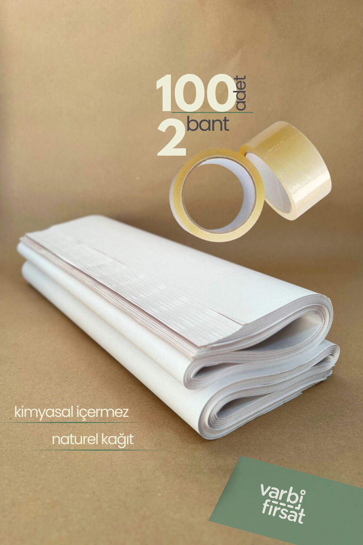 100 Adet 40x60 Tabak - Bardak Sarma Taşıma Taşınma Paketleme Kağıdı Hediye Paketi 2 Adet Koli Bandı