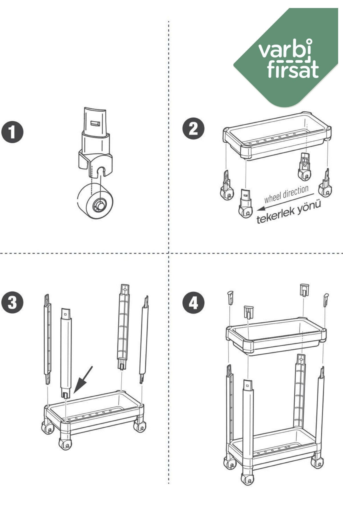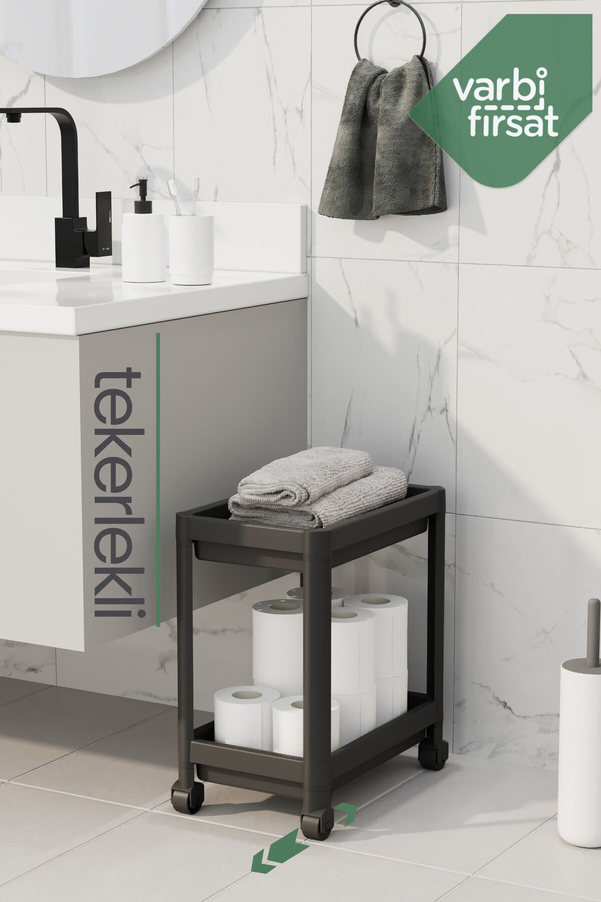 Varbifırsat 2 Katlı Tekerlekli Tezgah Altı Düzenleyici raf sistemi.; Tekerlekli ve tekerleksiz kullanım için özel tasarım.; ; Ürün Ölçüleri: Tekerlekli Kullanım : En: 22 cm Derinlik: 40 cm Yükseklik 41 cm Raf arası: 30 cm Ayaklı Kullanım : Yükseklik 38 cm Mutfak ve banyo alanlarınızı düzenlemek hiç bu kadar kolay olmamıştı.; ; Özellikler: • Çok Amaçlı Kullanım: Mutfak ve banyo temizlik detarjanları, bulaşık detarjanı, havlu, temizlik malzemeleri, şampuan gibi birçok ürünü rahatlıkla depolayabilirsiniz.; ; Dayanıklı plastik yapısı uzun ömürlü kullanım sağlar.; ; Kolay Kurulum: Demonte olarak gelen ürün, basit adımlarla hızlıca kurulabilir.; ; Şık Tasarım: Sade ve modern tasarımıyla mutfak ve banyo dekorasyonunuza uyum sağlar.; ; Bu düzenleyici ile mutfak tezgahınızın altını, banyo dolaplarınızı veya evinizin herhangi bir köşesini düzenleyebilir, alanınızı daha verimli kullanabilirsiniz.