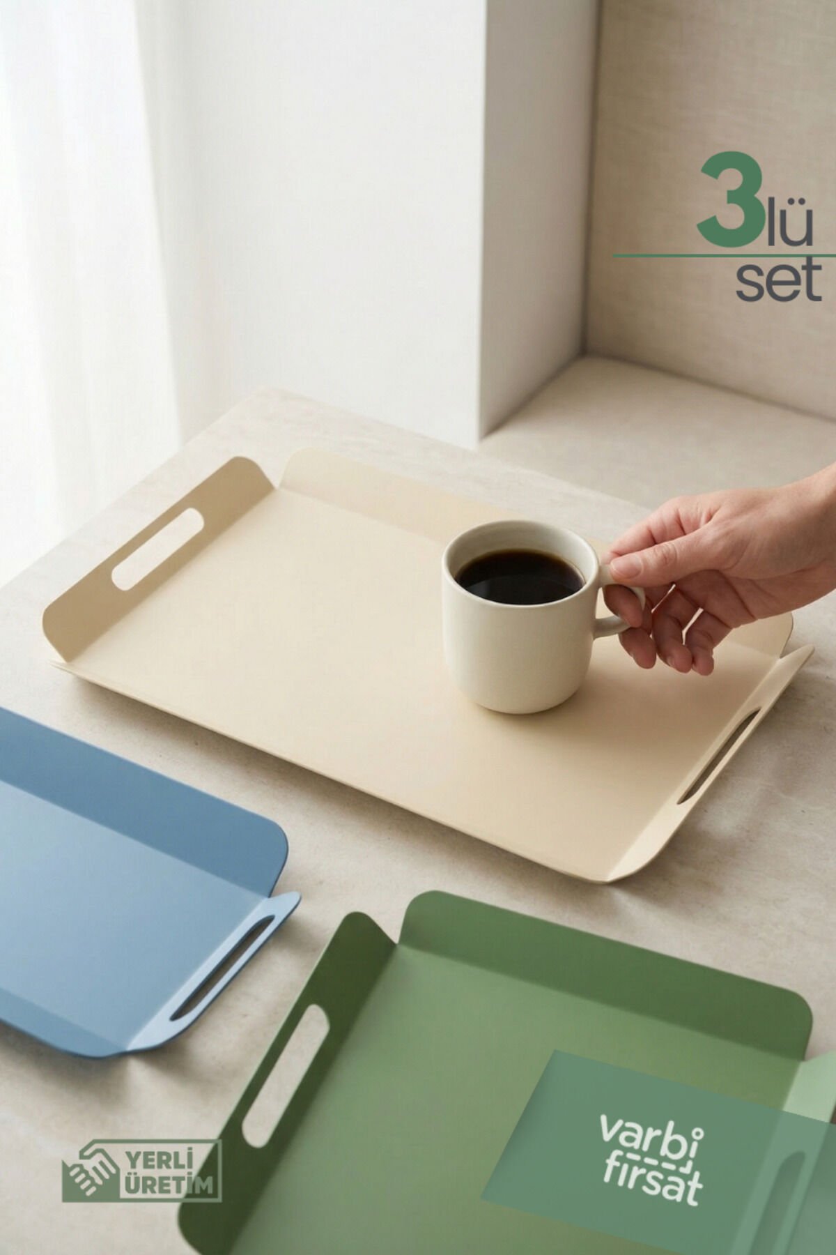 Fırın Boyalı Metal Kulplu Servis Tepsisi, modern ve sade tasarımıyla hem günlük kullanım hem de sunumlar için ideal bir üründür.; Dayanıklı metal gövdesi sayesinde uzun ömürlü kullanım sunar.; Fırın boya kaplaması, çizilmeye ve aşınmaya karşı ekstra direnç sağlar.; Minimal kulplu yapısı sayesinde kolay taşınır, servis sırasında pratik kullanım sağlar.; Salon, mutfak, balkon veya ofis ortamlarında; kahve, çay, atıştırmalık ve dekoratif sunumlar için uygundur.; Mat renk seçenekleri ile modern mutfak ve yaşam alanlarına uyum sağlar.;