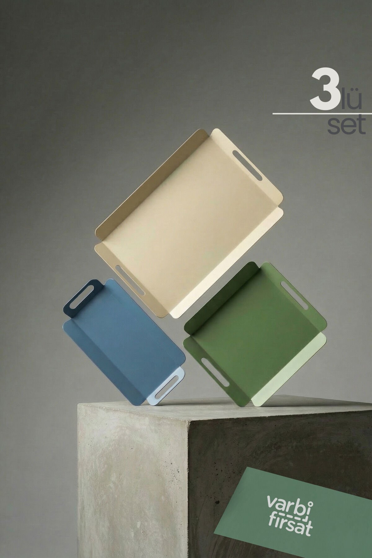 3’lü Modern Metal Tepsi Sunum Seti mettep3set