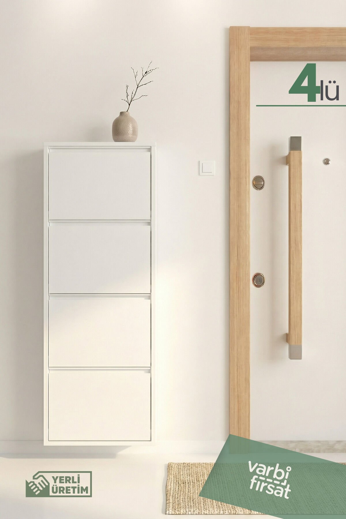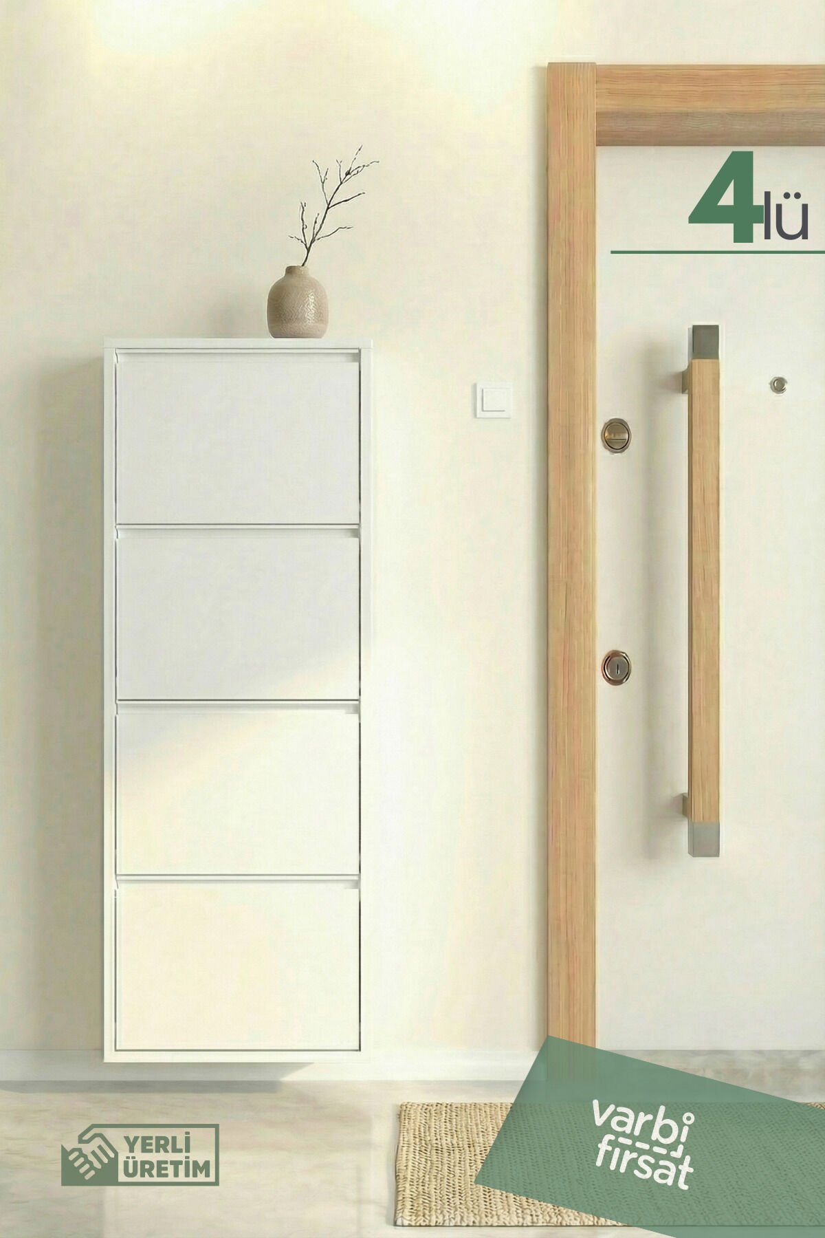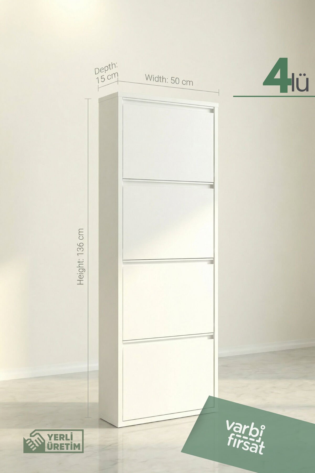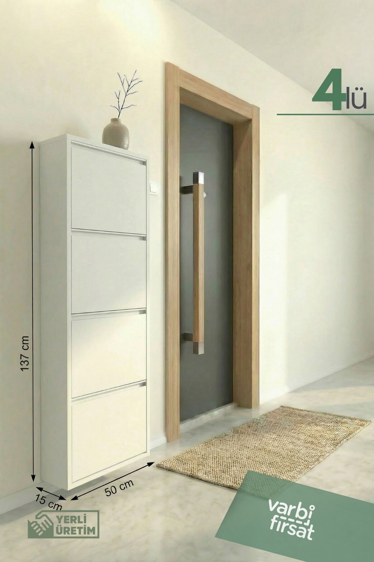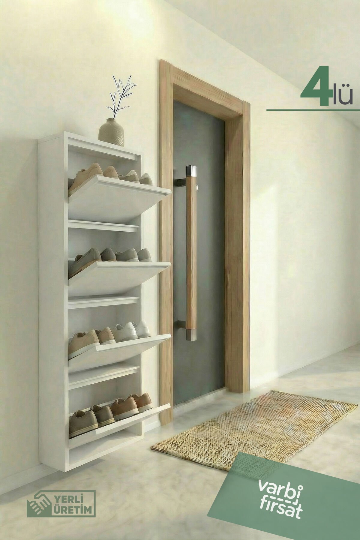 4'lü Metal Ayakkabılık, geniş depolama ihtiyacı olan evler için tasarlanmış şık ve dayanıklı bir üründür.; Sağlam metal gövdesi uzun yıllar sorunsuz kullanım sunarken, kaliteli boyası çizilmelere ve neme karşı direnç sağlar.; Dört ayrı göz sayesinde ayakkabılarınızı kategorilere ayırarak düzenli biçimde saklayabilirsiniz.; Kapaklı yapısı, ayakkabıları tozdan korur ve antrede sade bir görünüm oluşturur.; Modern ve minimal tasarımı, farklı dekorasyon stilleriyle kolayca uyum sağlar.; Dar alanlarda bile yerden tasarruf sağlayan dikey formu, kullanım alanını verimli hale getirir.; Yerli üretim olması, güvenilir kalite ve özenli işçilik avantajı sağlar.; Ev, ofis veya yazlıklar için ideal olan bu ayakkabılık, düzenli ve ferah bir giriş alanı oluşturmanıza yardımcı olur.; Uzun ömürlü yapısı sayesinde aile kullanımı için uygundur, yüksek kapasitesiyle mevsimlik ayakkabıları saklar, montajı kolaydır ve güvenli kullanım sağlar.; Duvara sabitlenebilir yapısıyla denge sunar ve alan düzenini korur, estetik görünüm sunar.