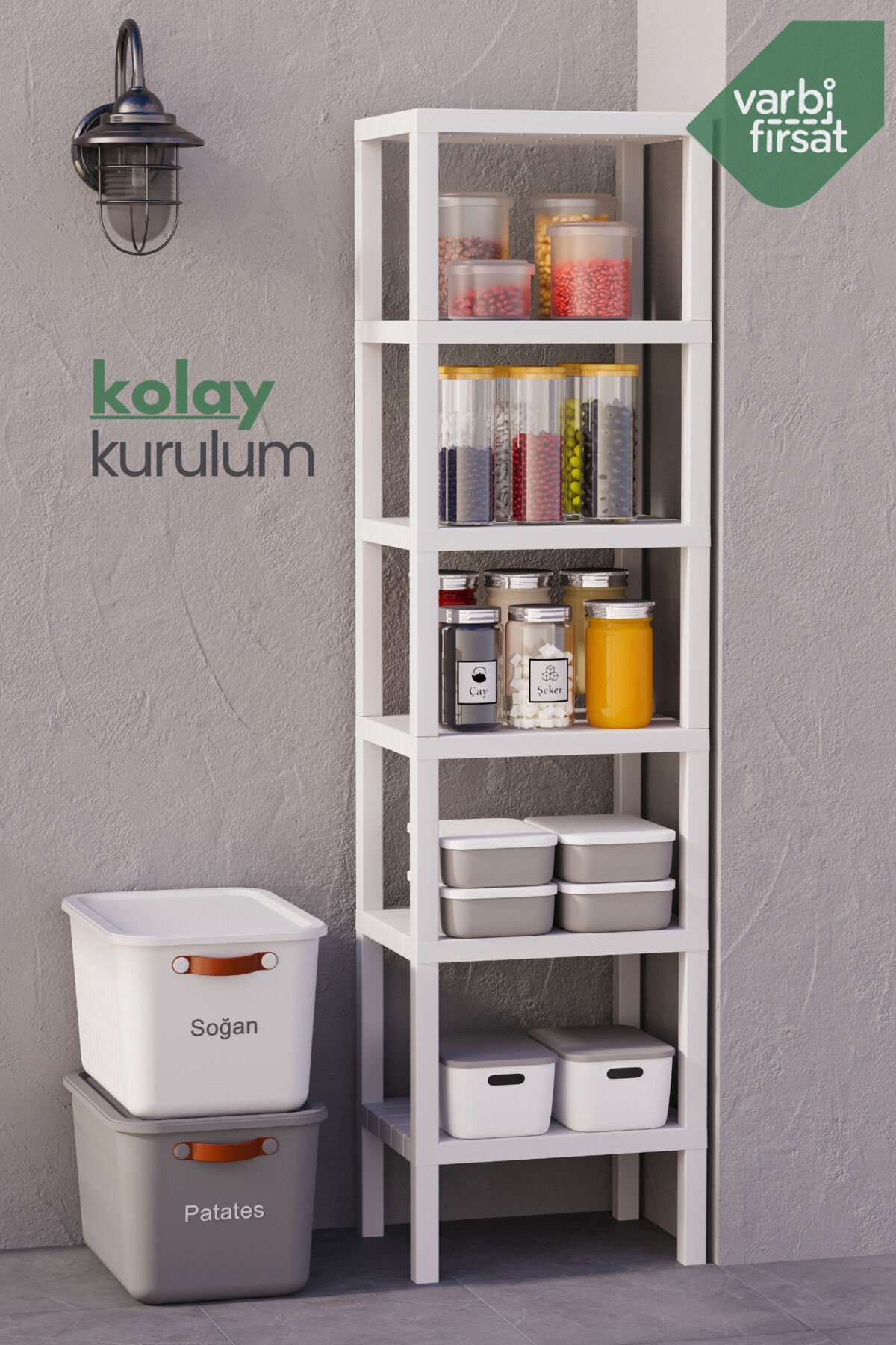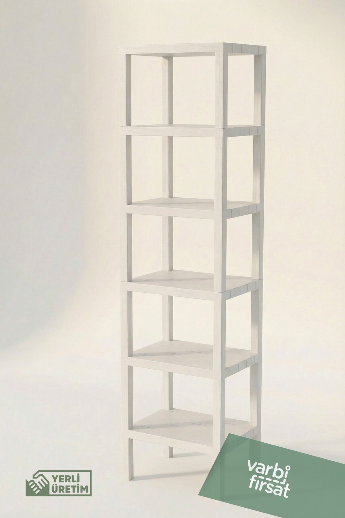6 Katlı Kitaplık Plastik Raf Ünitesi - Beyaz