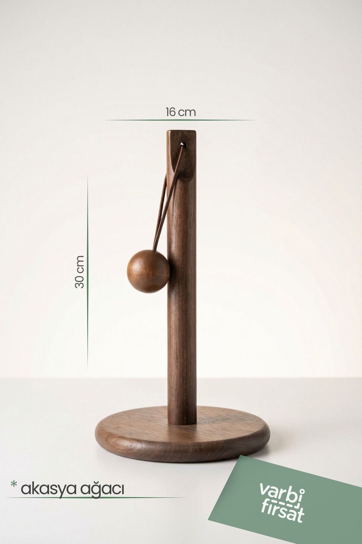 Doğallığı ve şıklığı mutfağınıza taşıyan Akasya Ağacı Kağıt Havluluk, zamansız tasarımı ve masif ahşap yapısıyla modern mutfaklar için özel olarak tasarlanmıştır.; Gerçek doğal akasya ağacından üretilen bu kağıt havluluk, hem sağlam yapısı hem de estetik duruşu sayesinde tezgâh üzerinde dekoratif bir tamamlayıcı olarak öne çıkar.; Dikey formu sayesinde yer kaplamaz, kağıt havlu rulonuzu kolayca takıp tek elle pratik şekilde kullanmanızı sağlar.; Alt kısmındaki geniş ve dengeli taban sayesinde kullanım sırasında devrilmez; mutfakta düzenli ve temiz bir görünüm sunar.; ✨ Öne Çıkan Özellikler
