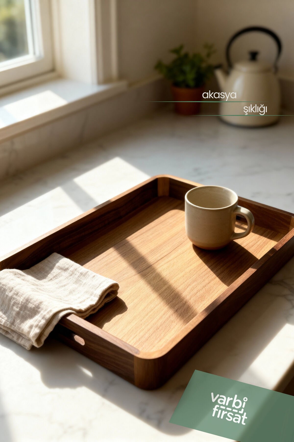 Mutfaklara ve sofralara doğal bir zarafet katmak isteyenler için tasarlanan Akasya Tepsi, hem dayanıklılığı hem de estetik görünümü ile öne çıkan premium bir üründür.; Akasya ağacının kendine has sıcak tonları ve doğal damar dokusu, her bir tepsiyi benzersiz kılar.; Sağlam yapısı sayesinde günlük kullanımda uzun ömürlüdür; aynı zamanda misafir ağırlarken sunumlarınıza şık bir dokunuş sağlar.; Geniş yüzeyi sayesinde kahve servisi, atıştırmalık sunumları, kahvaltılık düzenlemeleri veya dekoratif kullanım için idealdir.; Kaymaz ve dengeli yapısı, taşıma sırasında ekstra güvenlik sunar.; Yüzeyindeki doğal koruyucu yağlama, yiyecek temasına uygun hijyenik bir kullanım sağlar.; Akasya Tepsi, hem modern hem de rustik mutfaklara mükemmel uyum sağlar.; Hem ev kullanımı hem de hediye alternatifi olarak tercih edilebilecek, şık ve fonksiyonel bir sunum parçasıdır.; Gerçek ahşabın kalitesiyle sofralarınıza değer katmak için ideal bir seçimdir.