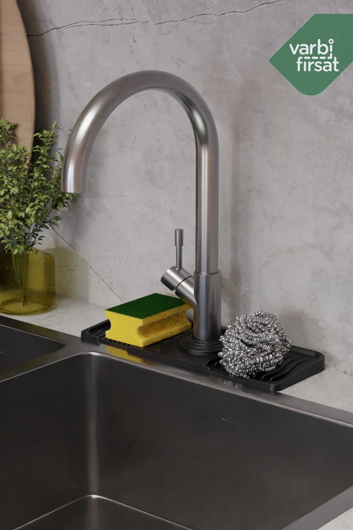 Siyah Su Tutucu Musluk Matı -mutfak Ve Banyo Için Koruyucu Lavabo, Musluk Ve Batarya Matı Musluk su tutucusu esnek malzemeden yapılmıştır.; Evye sıçrama koruması ince silikon evye musluğu paspasına kıyasla daha iyi kalite ve stabilite.; Yükseltilmiş süper boyut, daha geniş alan koruması, bu, temizlenmesi gereken su birikintileri ve muslukta su lekesi olmaması anlamına gelir.; Kalınlığa sahip silikon evye musluğu paspası, mutfak musluğu sıçrama koruması, yakalanan suyun lavaboya daha hızlı akmasını sağlayarak mutfak lavabosunun daha hızlı kurumasını sağlar bu, asla ıslanmaması veya lavabo musluğunun yanında su lekesi olmaması anlamına gelir.; Suyun lavaboda ve banyo tezgahında kalması konusunda endişelenmenize gerek yok.; Evyenizi ve banyo tezgahınızı zahmetsizce yenileyin! Sadece bir musluk kurutma matı değil, aynı zamanda mutfak lavabosu, bulaşık deterjanı tepsisi, bulaşık kurutma matı, mutfak organizasyonu, ev düzenleyici için bir sünger tutucu.; Mutfak için: Üzerine sünger, bulaşık deterjanı, deterjan, fırça ve şişeyi koyun.; Artış boyutunu yükseltin, daha fazla mutfak malzemesi koyabilirsiniz.; Lavabonuzu daha temiz hale getirin.; Organizatör matı, drenaj pedi olarak kullanılır.; Süper pratik bir ev, banyo ve mutfak aletidir! Musluk pedi nerdeyse tüm musluk tabanlarına kolayca uygulanabilen özel bir tasarıma sahiptir.; Kolay kullanım: Musluk etrafına kolayca konulabilecek şekilde tasarlanmıştır.; Eğer musluğunuzun çapı geniş ise makas ile daire olarak makas yardımı ile çapı büyütmenize olanak sağlar ve böylece tam musluğun etrafını sarar ve aşağıya su sızıntısını önler.; Musluğunuzun arkasını her zaman kuru ve temiz tutar, böylece temizlemek için daha az zaman harcayabilirsiniz.; Su lekelerinin mutfak/banyo lavabosuna sıçramasını önleyebilir, tezgahı temiz ve düzenli tutabilir.; Lavabo sıçrama koruması sadece musluk kurutma pedi değildir, ayrıca diş fırçanızı, bardağınızı, el sabununuzu ve bulaşık sabununuzu koyabileceğiniz tasarımda üretilmiştir.; Ayrıca, süngerler, bardak, bulaşık gibi malzemeleri kurutmak amacıyla musluk matı kullanılabilir.;
