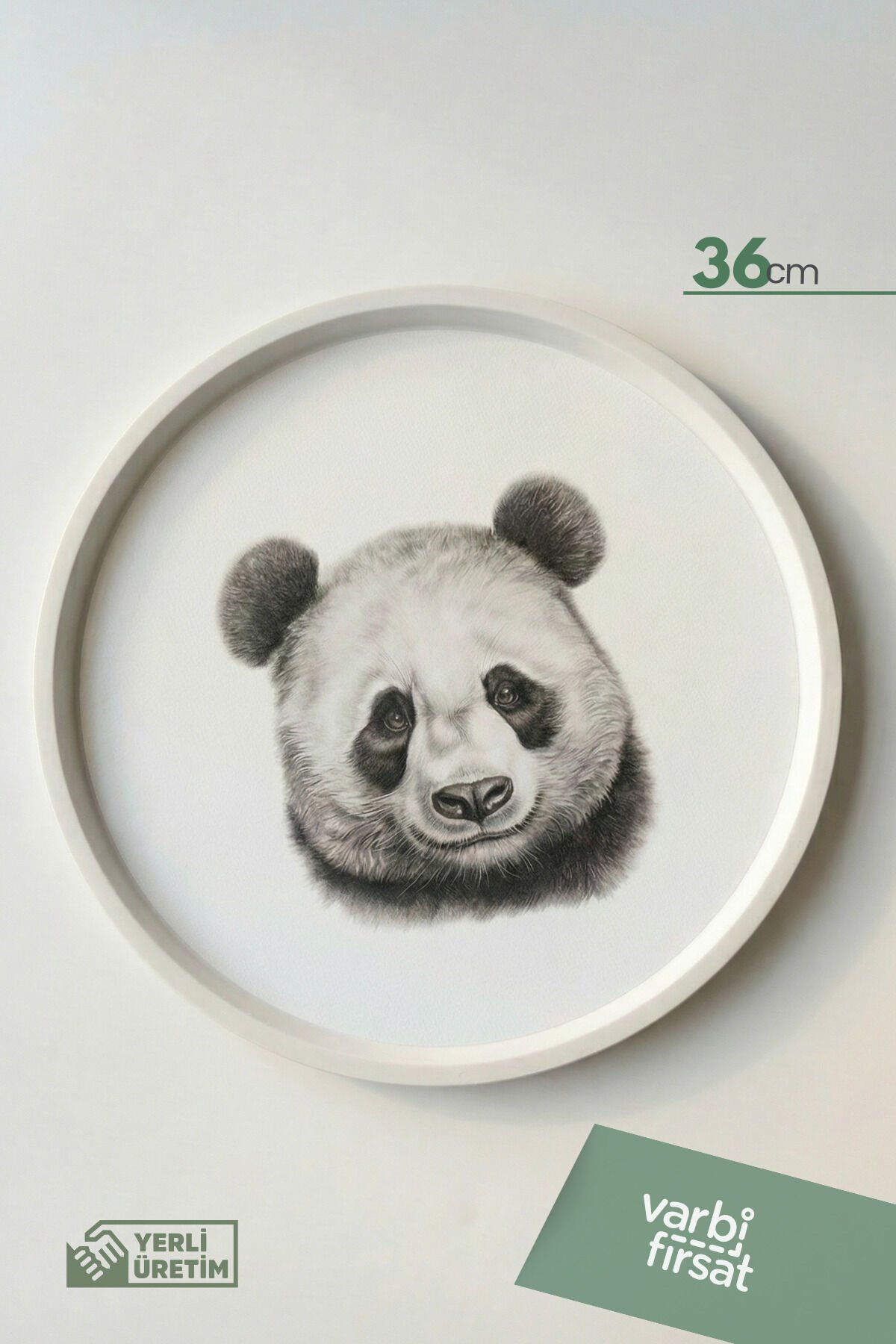 Panda Desenli Yuvarlak Dekoratif Tepsi - 36 cm