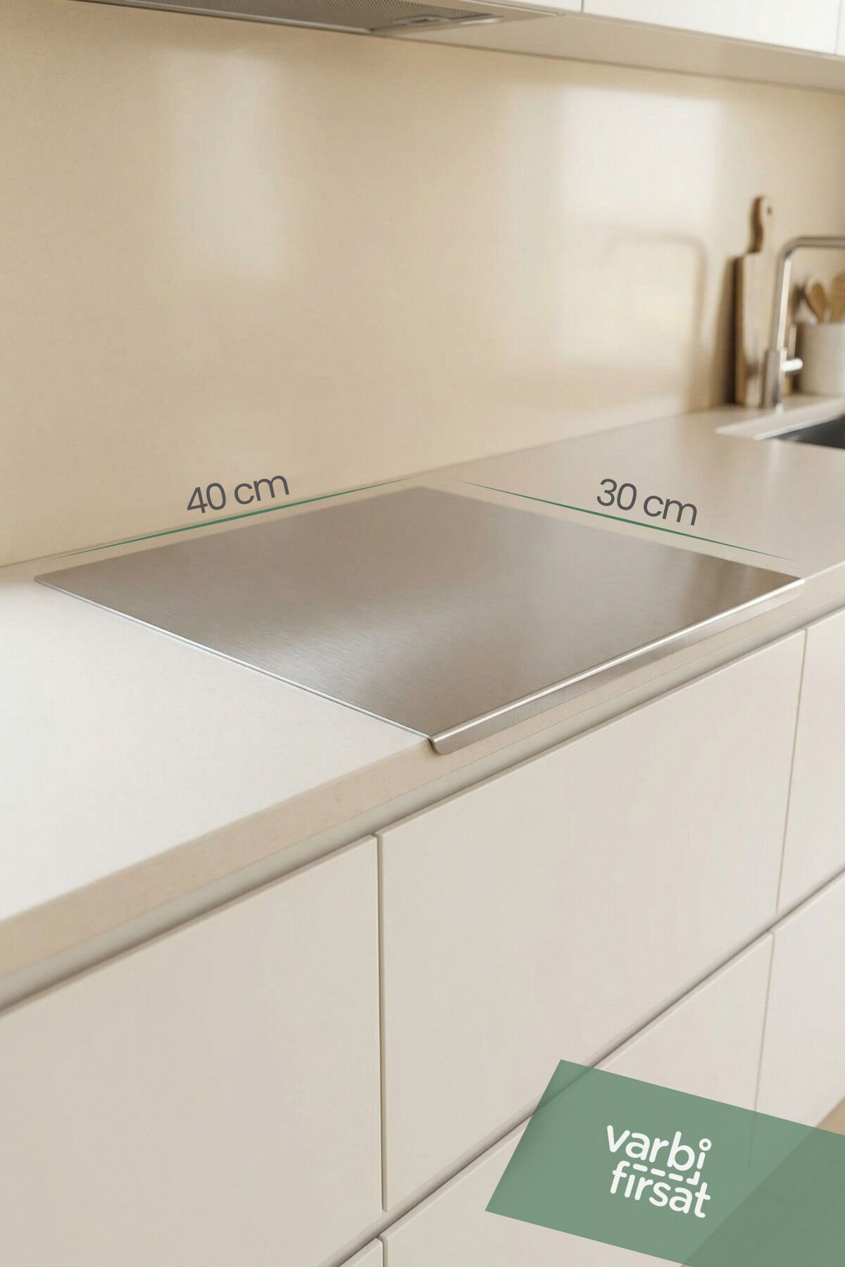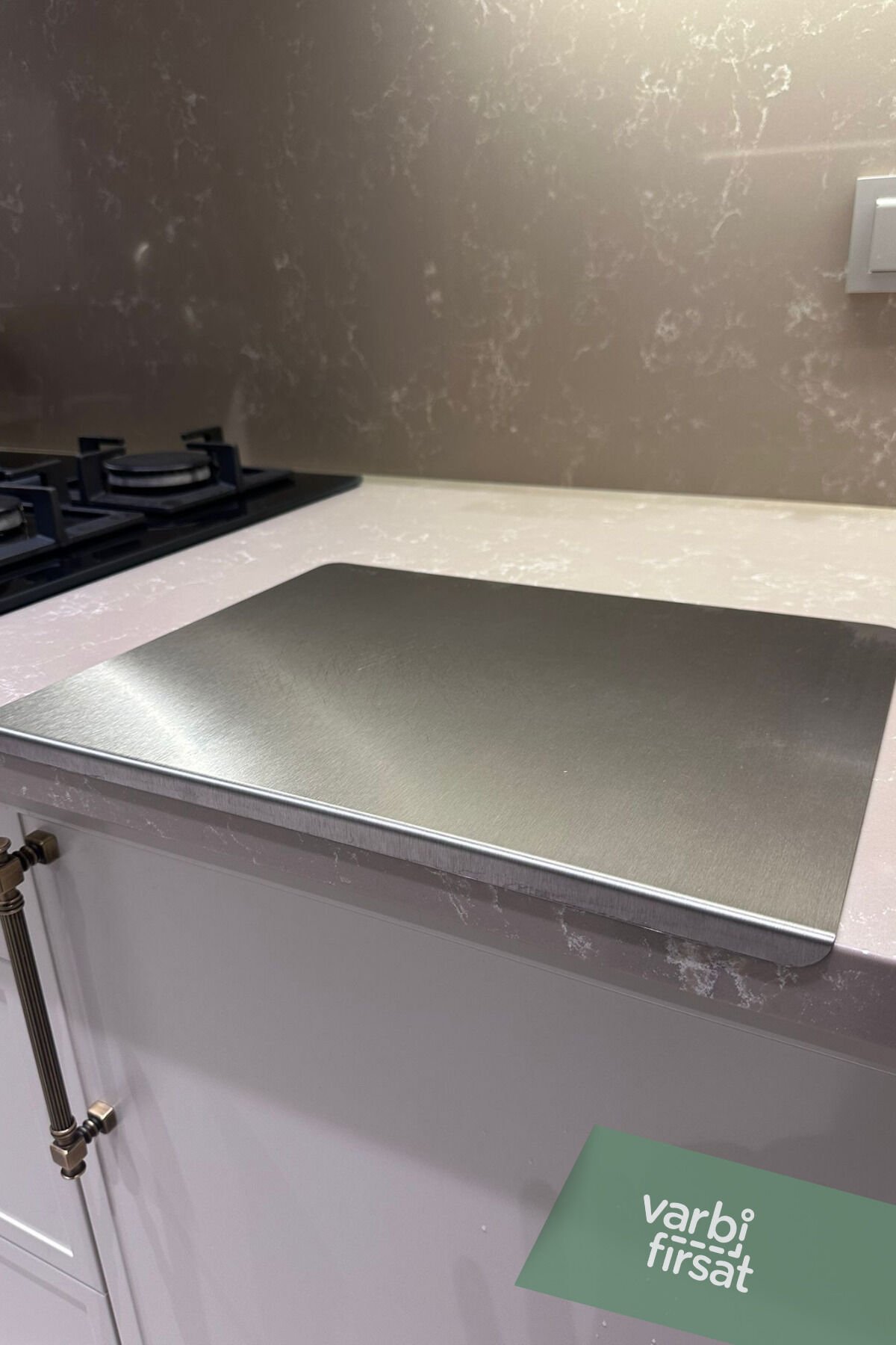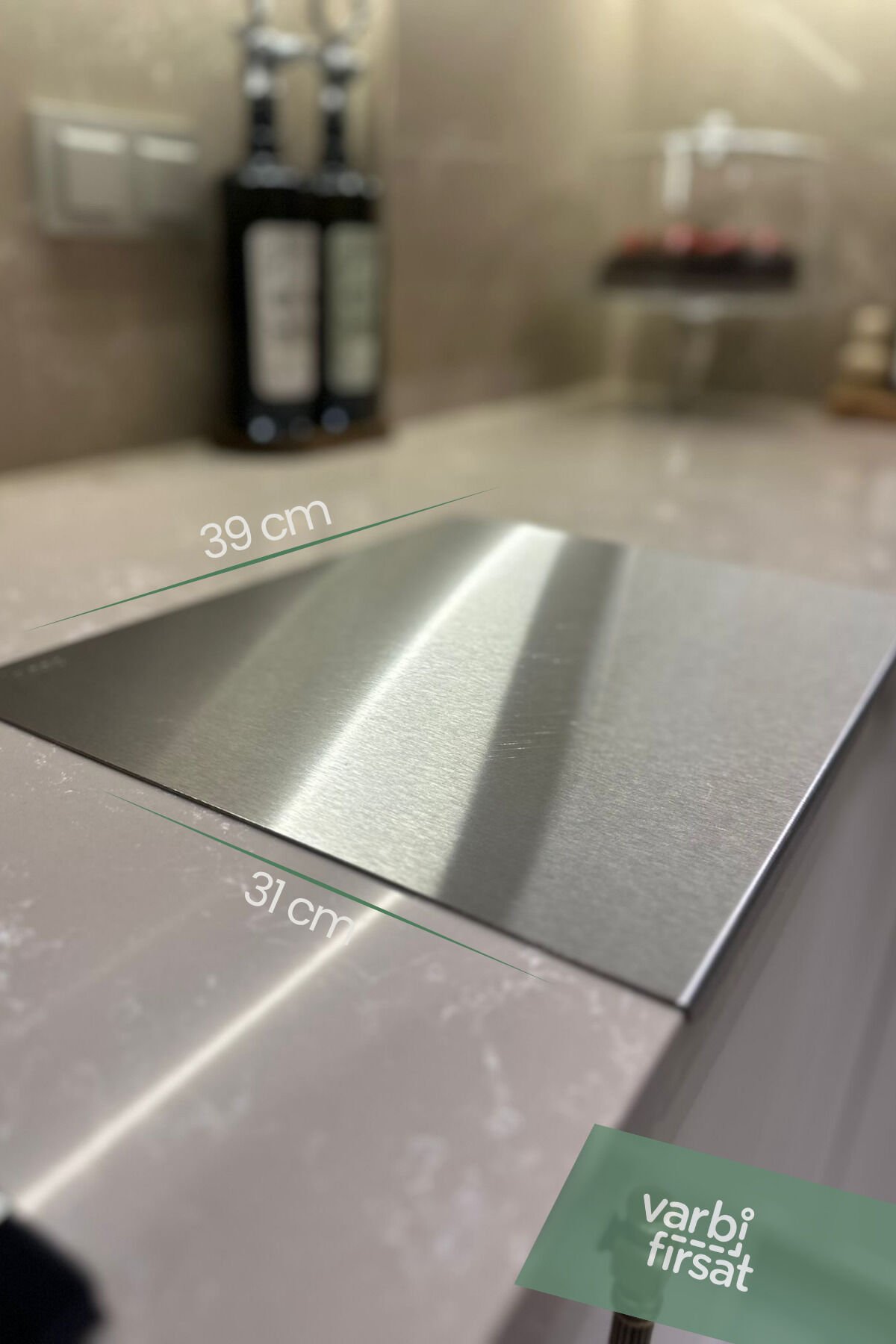 Paslanmaz Çelik Tek Bükümlü Metal Tezgah Koruyucu Kesme Tahtası 30x40 cm