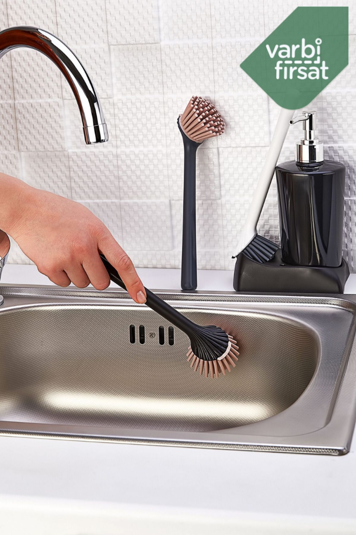Silikon Uçlu - Süper Dayanıklı Bulaşık - Lavabo Fırçası - Siyah