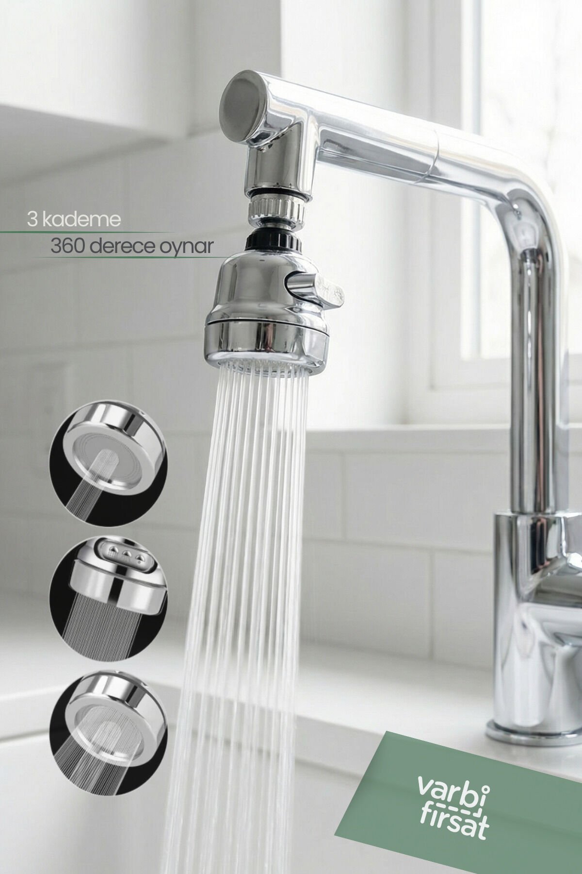 Su Tasarruflu 360° Oynar 3 Kademeli Musluk Başlığı Aparatı