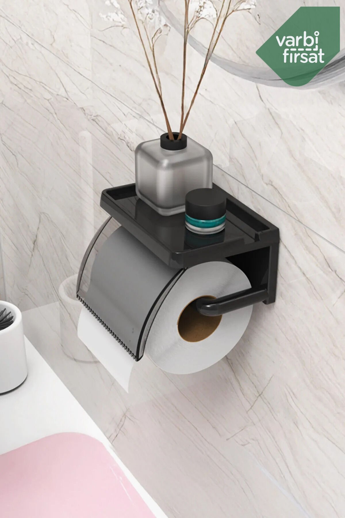 Yapışkanlı Kapaklı Tuvalet Kağıdı Askısı Banyo Tuvalet Kağıtlığı Aparatı Peçetelik Organizer Plastik